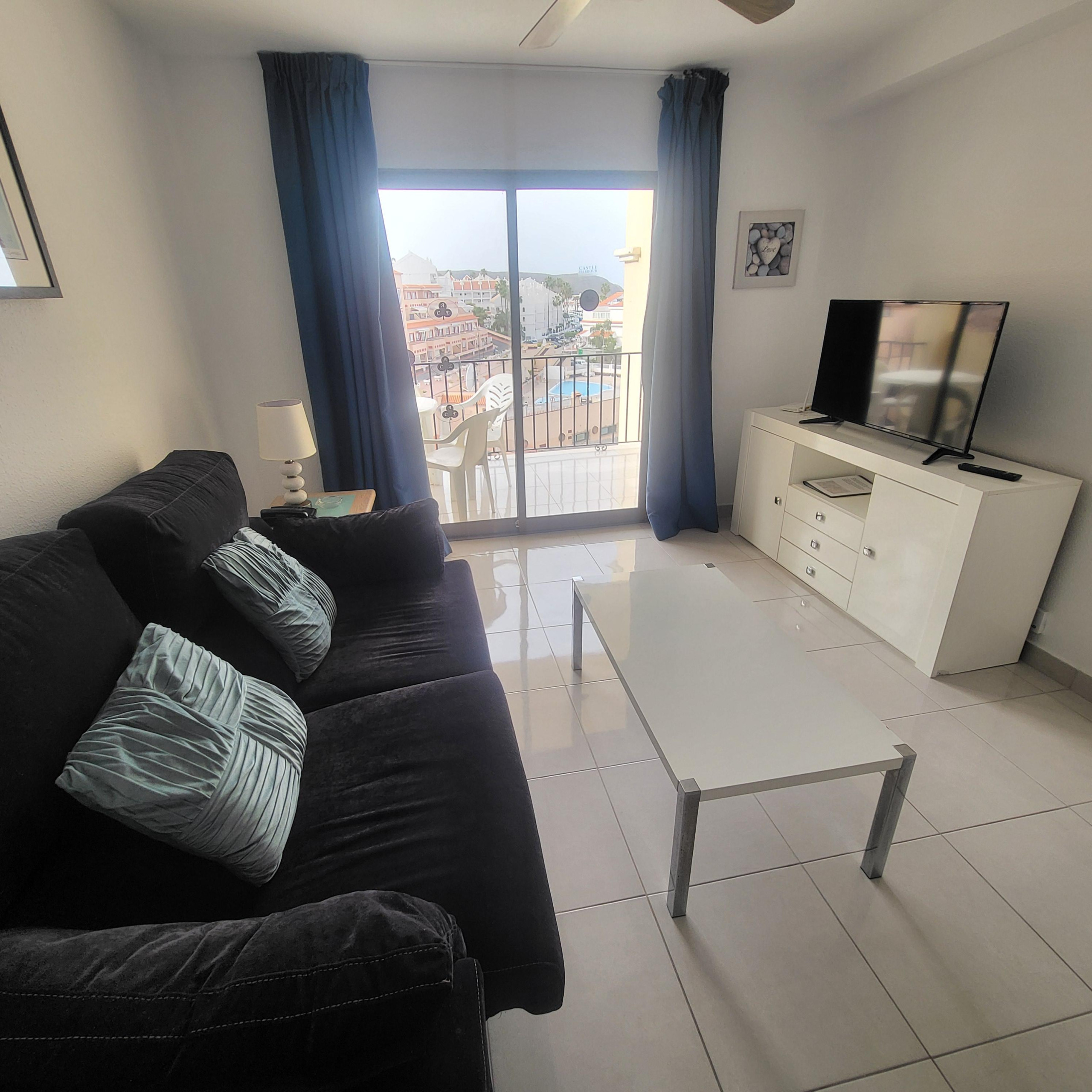 Un fabuloso apartamento con fantásticas vistas situado en una excelente ubicación, central para todo lo que necesita, como la parada principal de autobús de Los Cristianos, bares, restaurantes, bancos, supermercados y menos de 10 minutos a pie de la playa.