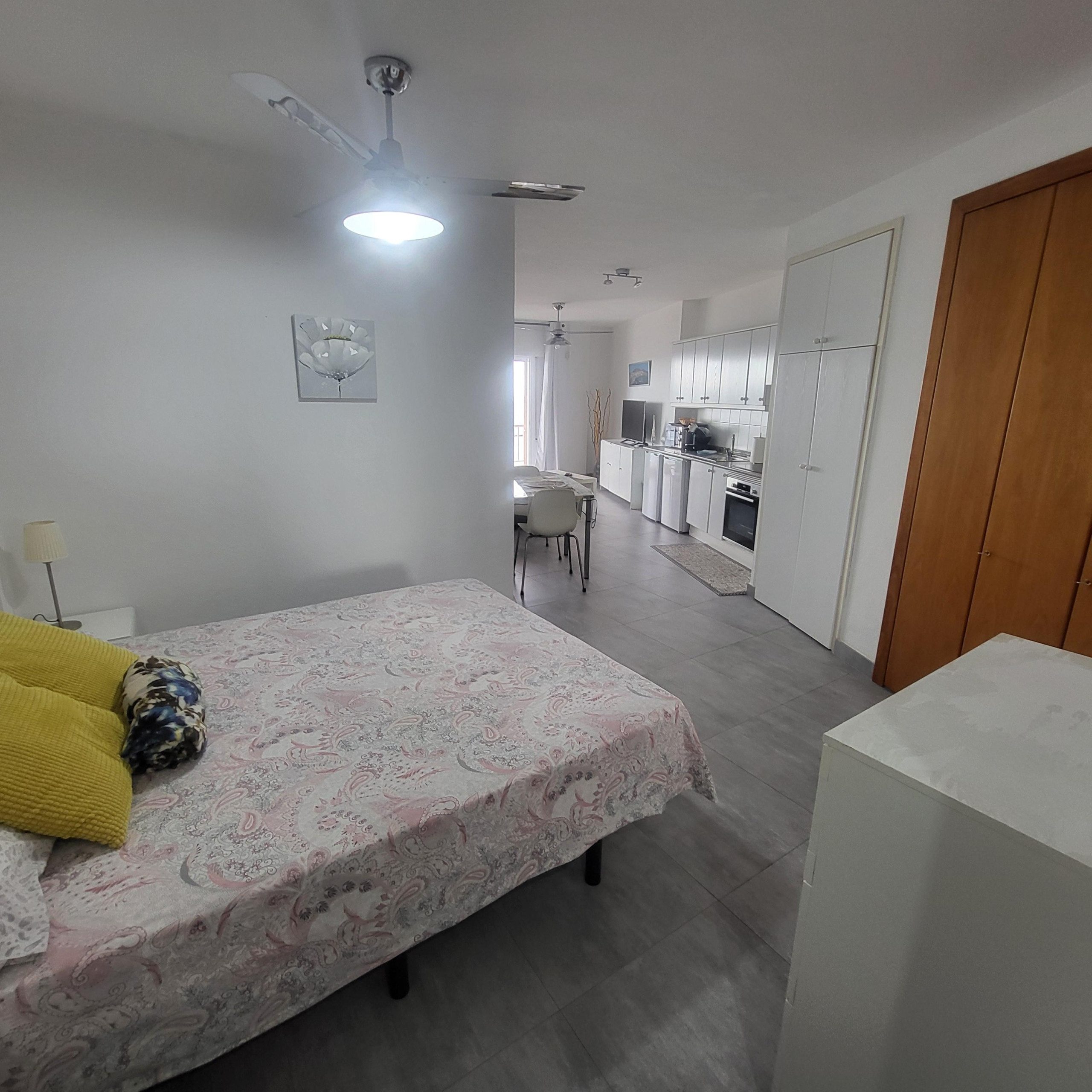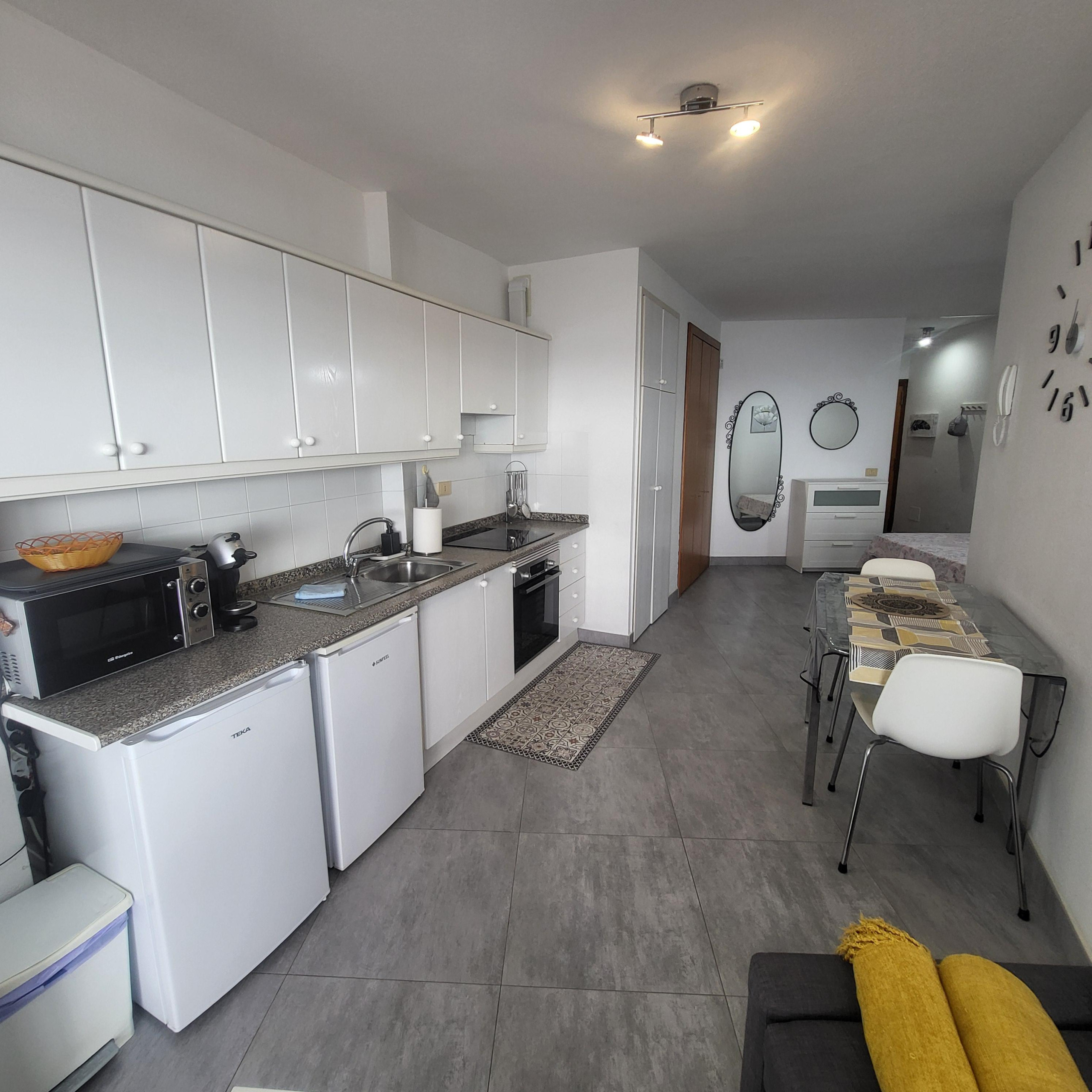 Un apartamento tipo estudio con todas las comodidades. Con vistas a la piscina y situado en una excelente ubicación, central a todo lo que necesita, como la parada principal de autobús de Los Cristianos, bares, restaurantes, supermercados, etc... y a menos de 10 minutos a pie de la playa.